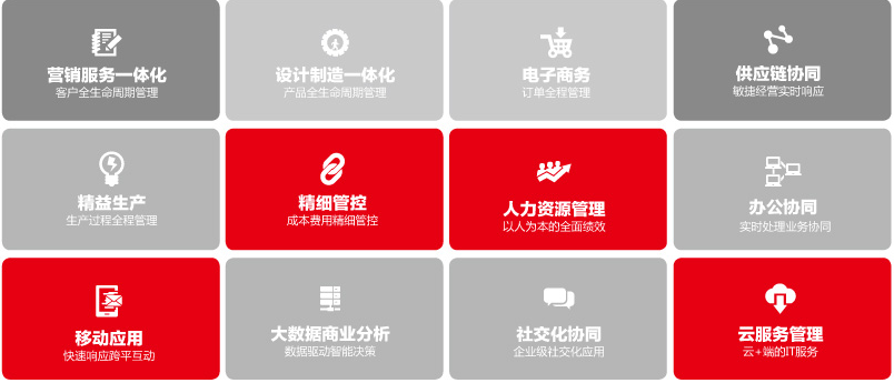我們向您提供覆蓋企業(yè)各個(gè)經(jīng)營及管理環(huán)節(jié),高顆粒度的應(yīng)用方案及產(chǎn)品。